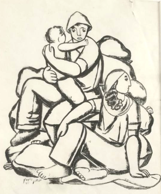 Otra obra de nuestra colección, un cartón que pintó en su último año de vida (1976), ya con un fuerte elemento de abstracción, muestra el mismo escenario perfectamente reconocible, pero sin comuneros, con colores muertos y un aire postapocalíptico. Es el momento en que, con el país marcado por la guerra de Yom Kipur y con el Likud a punto de hacerse con el gobierno, el movimiento kibutz entra en crisis económica, de modelo social, de relación con el estado y sobre todo, de encaje en Israel.